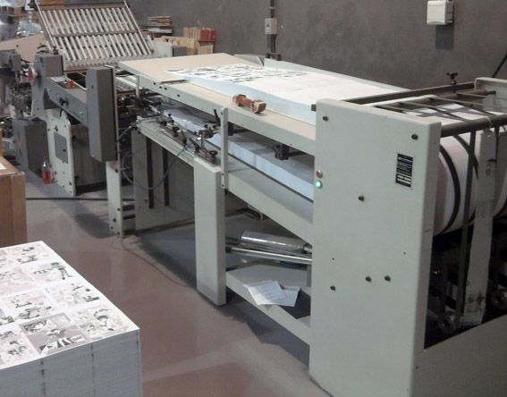 Temos 2 dobradeiras folha inteira, Colecionadora automática, encapadeira Monostar 4.000 livros p/ hora em linha com Trilateral Automática Muller Martini, máquina de Costura Automática Aster 180, Grampeadeira e Shirink automático, além de colocação de